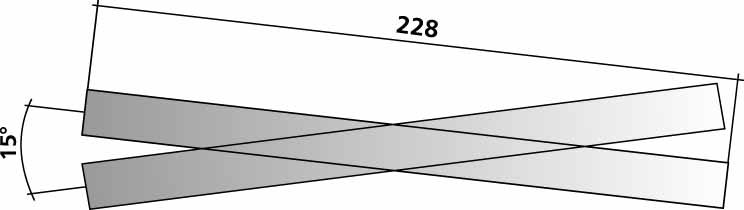 Standard kurveradier er 366, 425, 484, 543 mm (hver skinne udgør en vinkel på 30°).